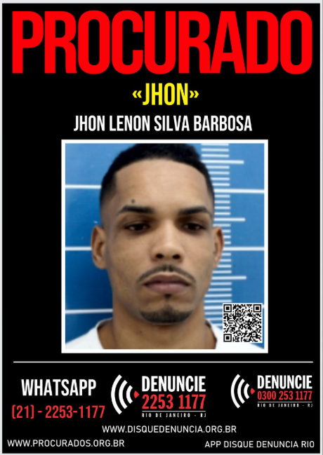 Jhon Lenon Silva Barbosa, vulgo "Jhon", se encontra na condição de evadido do sistema penitenciário, desde o dia 18 de outubro de 2025.