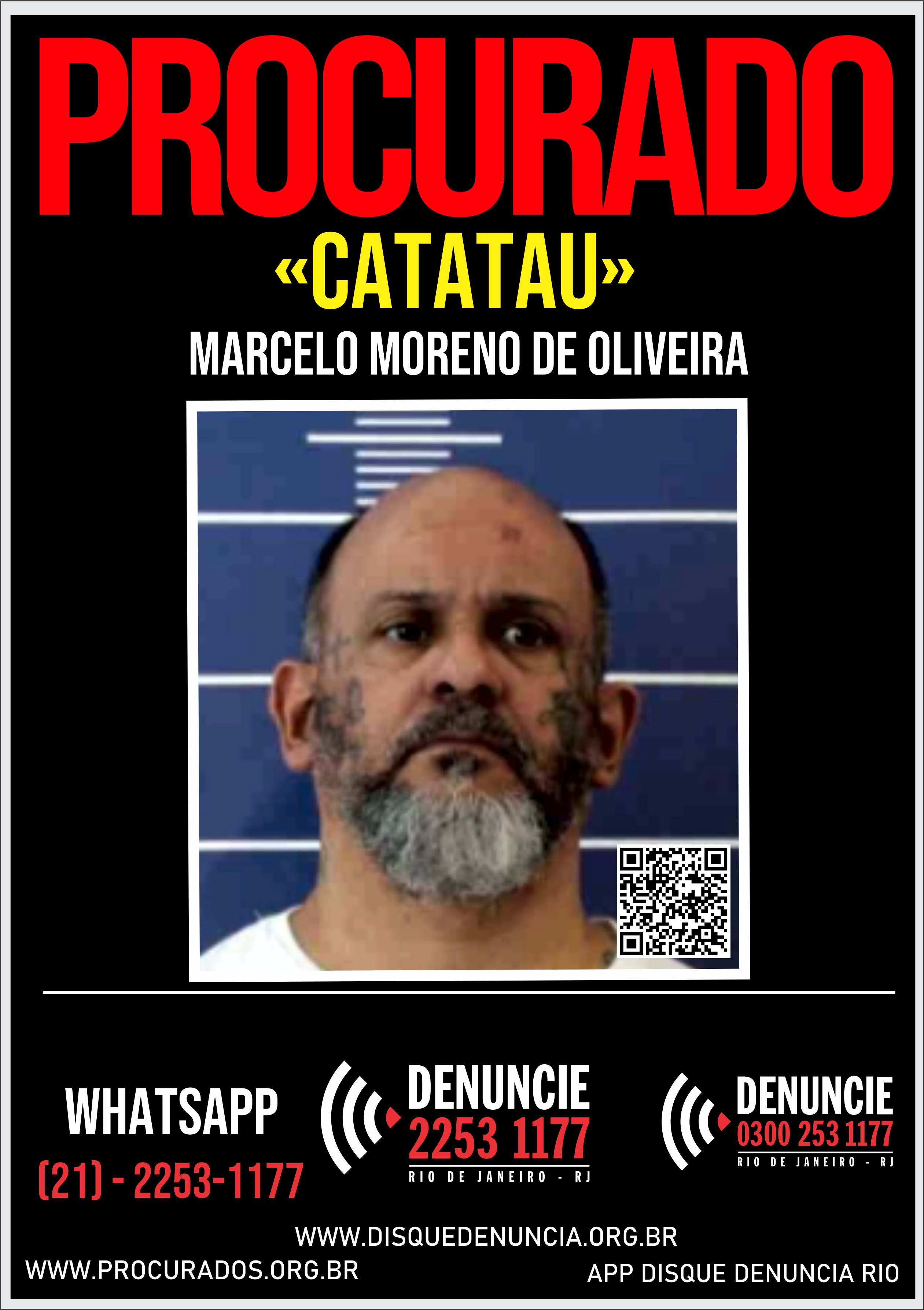 Assim, quem tiver qualquer informações sobre a localização do foragido da Justiça, denuncie imediatamente, para o Disque Denúncia, pelos seguintes canais de atendimento: